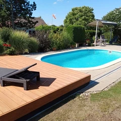 Die Poolüberdachung VIVA™ von Alukov ist eine flache Lösung mit Einzelschienen-System, das barrierefreien Zugang von drei Seiten ermöglicht. Dieses moderne Design schützt den Pool vor Schmutz, beschleunigt das Aufheizen des Wassers und hält die Temperatur über Nacht konstant.