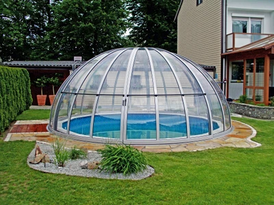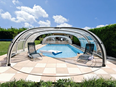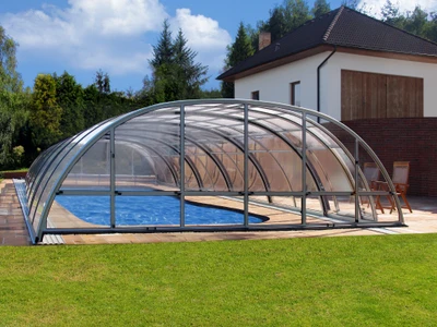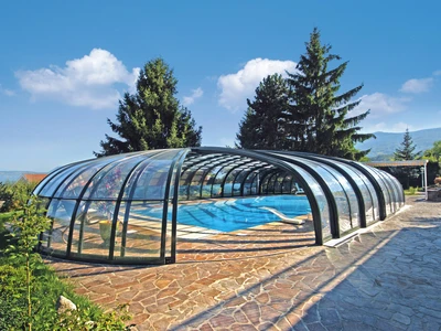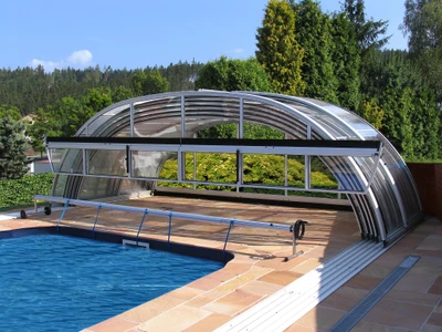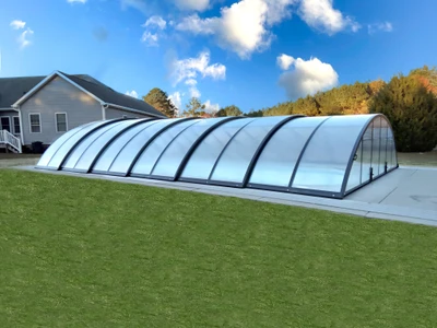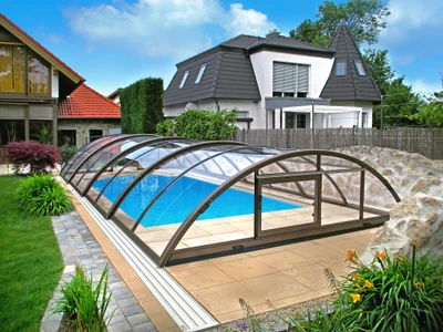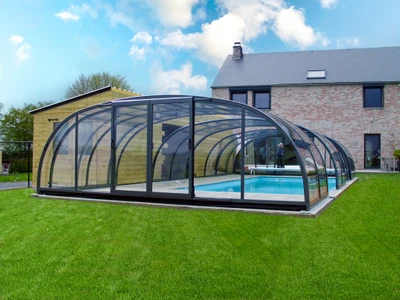 Hohe Überdachungen hingegen schaffen einen voll überdachten Bereich rund um den Pool, der komfortables Schwimmen und Entspannen bei jedem Wetter ermöglicht. Dank der Bewegungsfreiheit über die gesamte Höhe der Konstruktion kann diese Variante auch als geschützter Ruhebereich oder Treffpunkt mit Familie und Freunden genutzt werden. Beide Überdachungstypen bestehen aus langlebigen Materialien, die eine lange Lebensdauer, einfache Wartung und reibungslose Bedienung garantieren.
