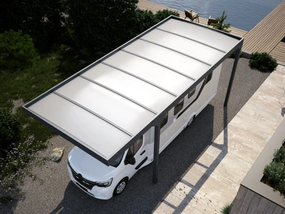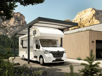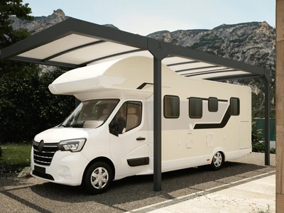 Das CARPORT CAMPER von Alukov ist speziell konzipiert zum Schutz von Wohnmobilen vor Witterungseinflüssen. Erhältlich in drei Größen (Standard, L, XL), mit robuster Aluminiumstruktur und Polycarbonatdach schützt es Ihr Reisemobil vor Regen, Schnee und Sonne. Als freistehende oder an das Gebäude angebaute Variante verfügbar.
