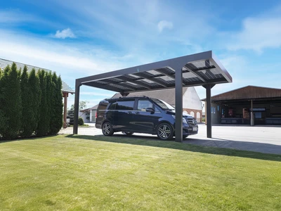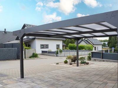 Das CARPORT von Alukov ist ein eleganter Unterstand zum Schutz Ihres Fahrzeugs vor Witterungseinflüssen. Erhältlich mit flachem oder geneigtem Dach, für ein oder zwei Fahrzeuge, ausgestattet mit einem robusten, anthrazitfarbenen Aluminiumrahmen und 16 mm opalem Polycarbonatdach. Wetter- und schneefest – ideal für anspruchsvolle Fahrzeugbesitzer.